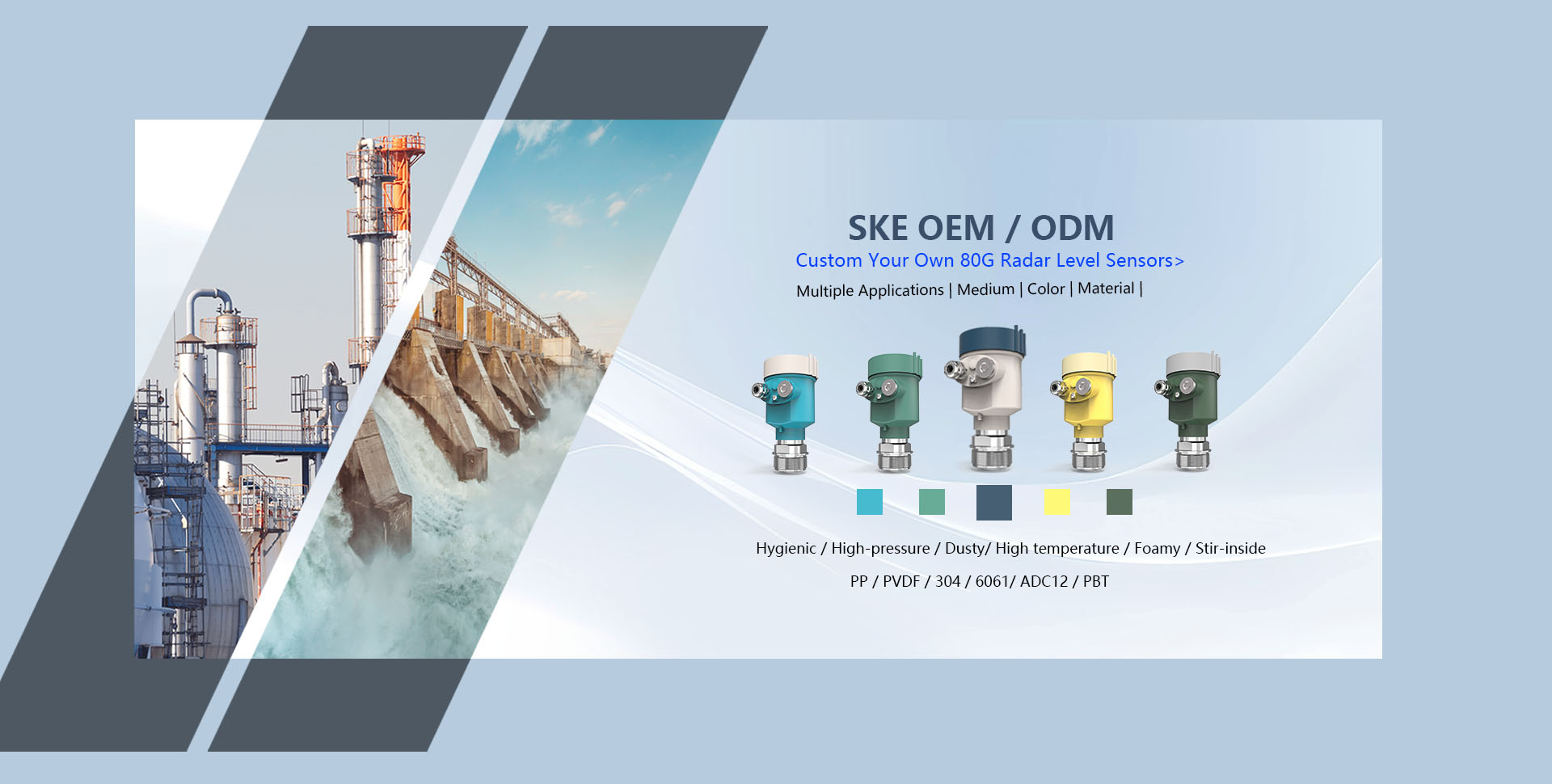SKE mainly researches, manufactures and sells 80GHz radar level transmitters, ultrasonic non-invasive level gauges, mmwave radar level sensors, ultrasonic level switches,
